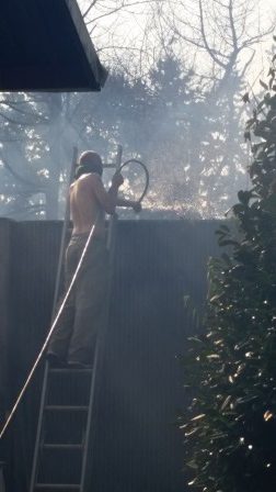 Several homeowners worked in the smoke to protect their property and that of their neighbors. With their assistance, firefighters were able to keep the flames from reaching any houses. Almost every home that fronted the freeway had large black patches of burned grass in the backyard.